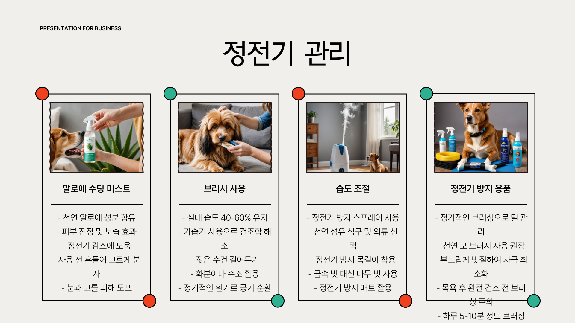 건조한 겨울철, 강아지와 장난치다가 정전기로 인해 깜짝 놀란 경험 있으시죠? 정전기는 강아지에게도 스트레스를 주는 요소입니다. 저는 알로에 수딩 미스트와 브러시를 병행했는데 효과가 꽤 좋았어요. 매일 빗질해주고, 건조하지 않게 습도도 조절해주면 정전기도 훨씬 줄어듭니다.