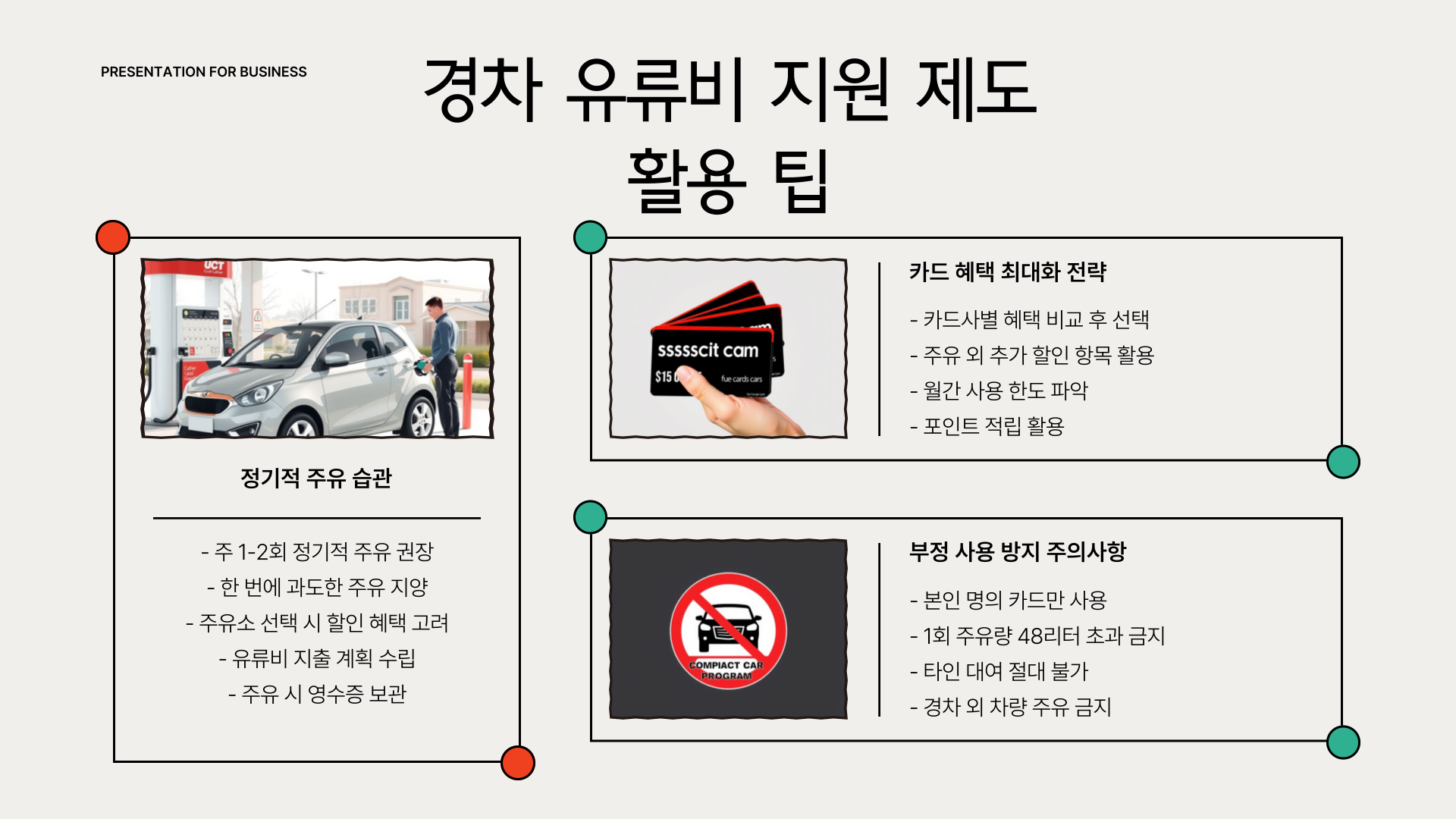 - 1회 48리터 초과 주유 시 부정 사용으로 간주되어 지원 중단 위험