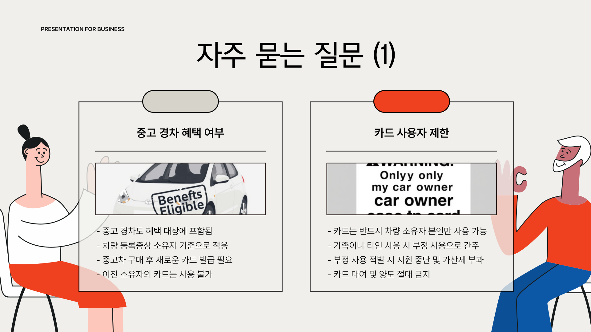 A. 네, 중고 경차도 대상입니다. 단, 차량 소유자가 바뀌면 새 카드를 발급받아야 합니다. - Q. 카드를 타인이 사용해도 되나요?