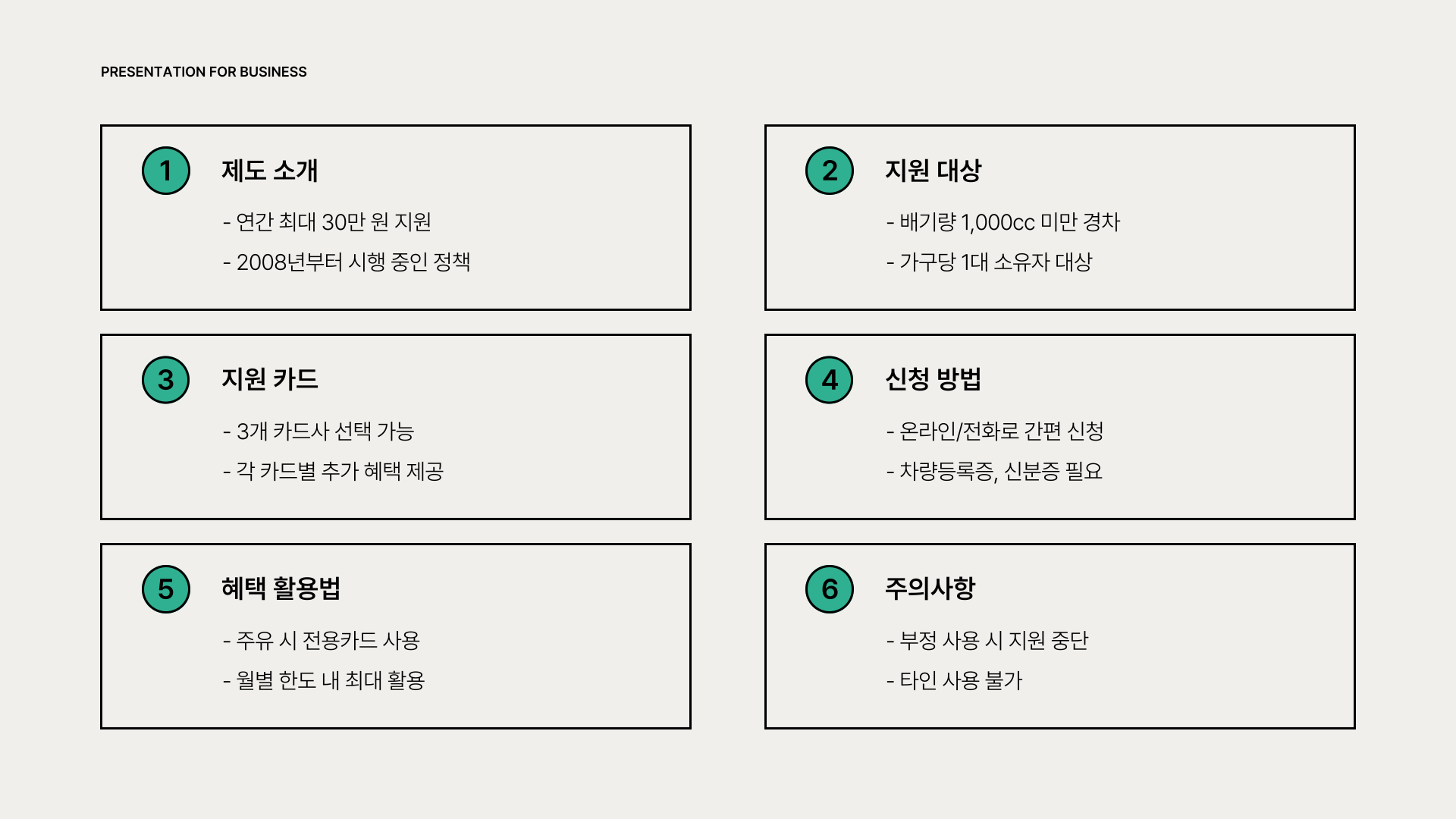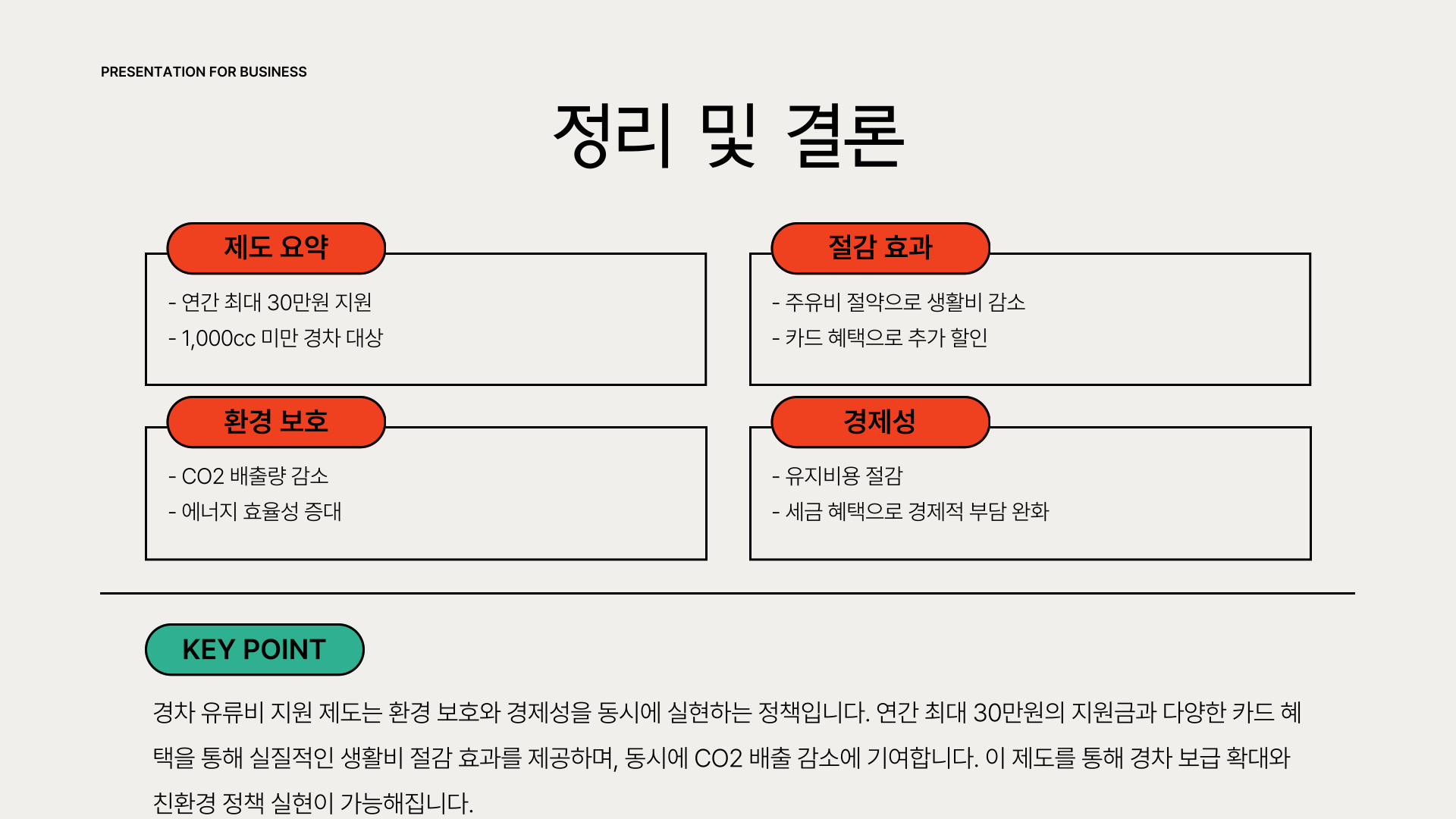 지금까지 경차 유류비 지원 제도와 카드 신청 방법, 그리고 주의사항에 대해 알아보았습니다. 작은 차이지만 꾸준히 이용하다 보면 생활비 절감에 큰 도움이 됩니다. 이 혜택을 몰라서 못 받고 계신 분들이 주변에 계시다면 꼭 알려주세요. 경제적이면서도 환경까지 생각하는 현명한 경차 생활, 바로 지금 시작해보세요! 😊