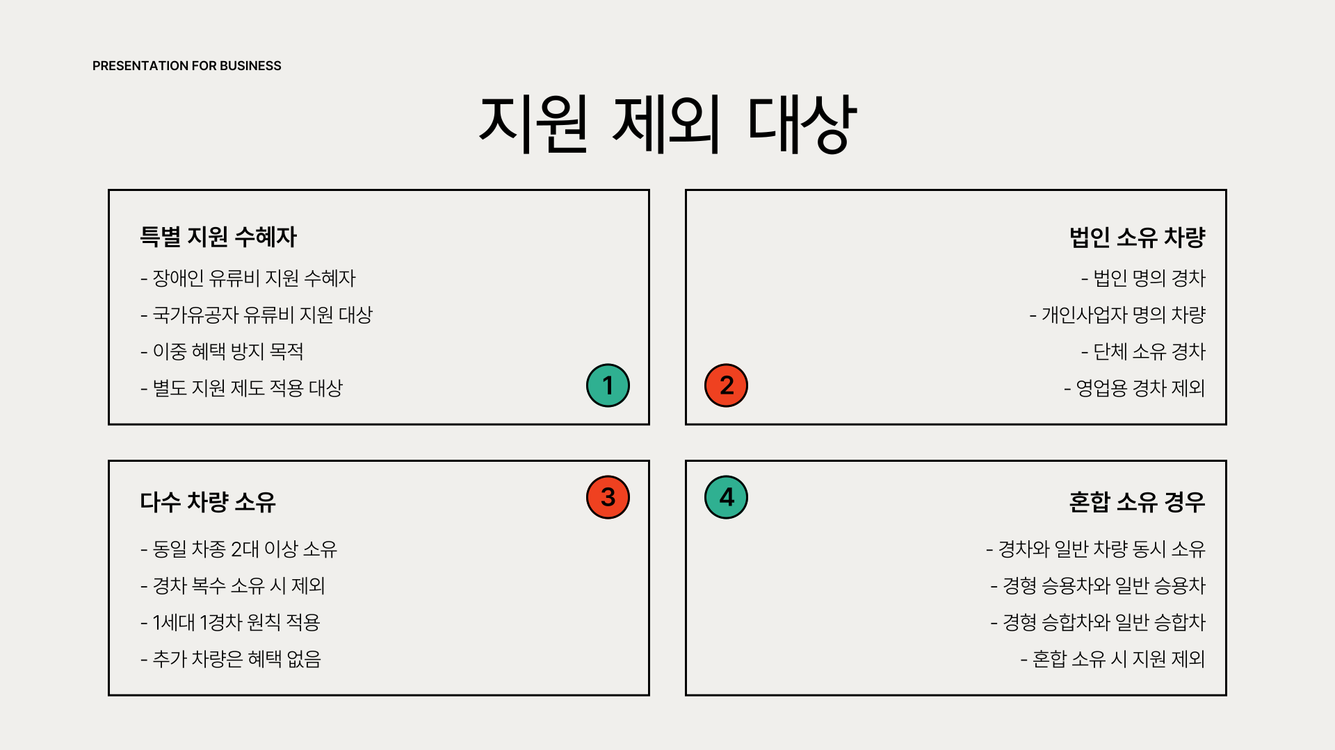 A. 일반 승용차를 함께 소유한 경우에는 지원에서 제외됩니다.