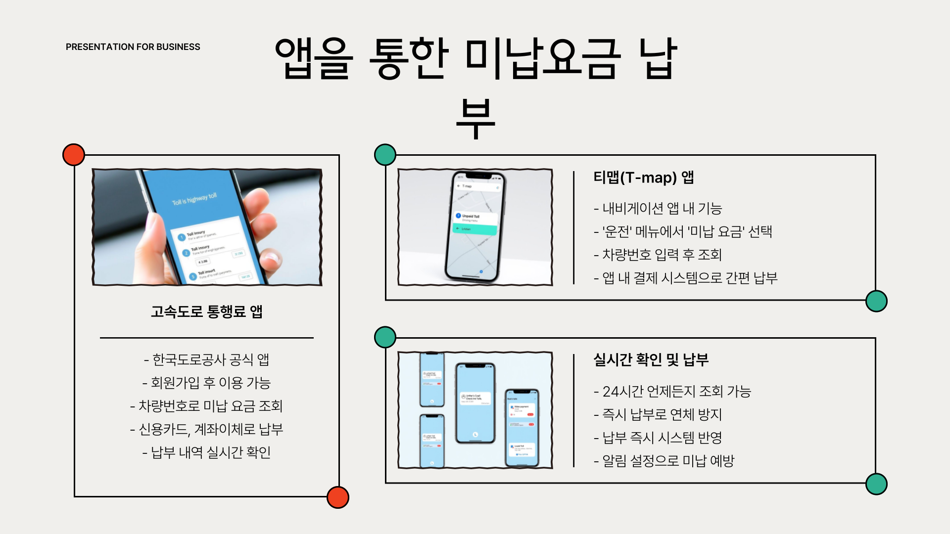 - 앱 납부: 고속도로 통행료 앱 / 티맵