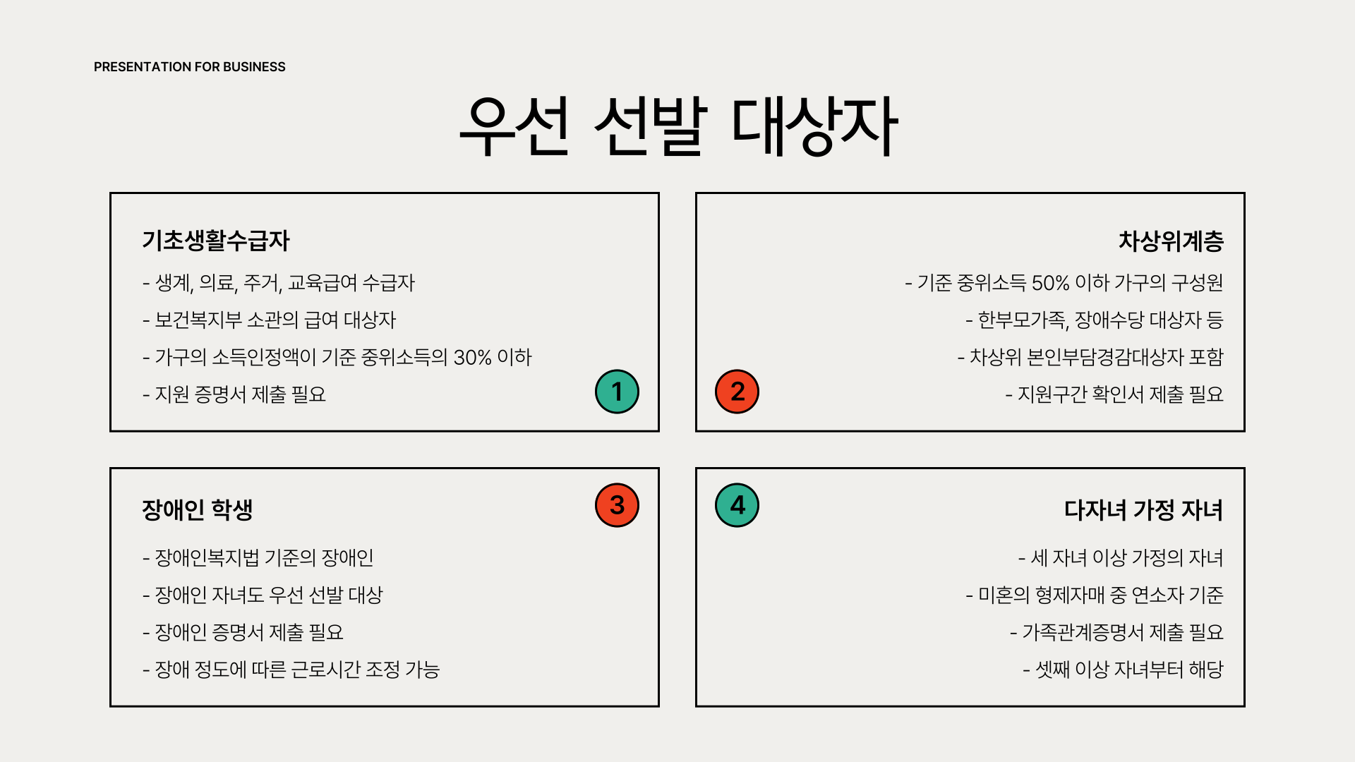 - 기초생활수급자 및 차상위계층