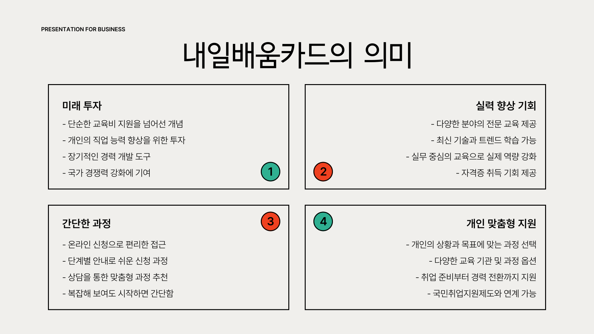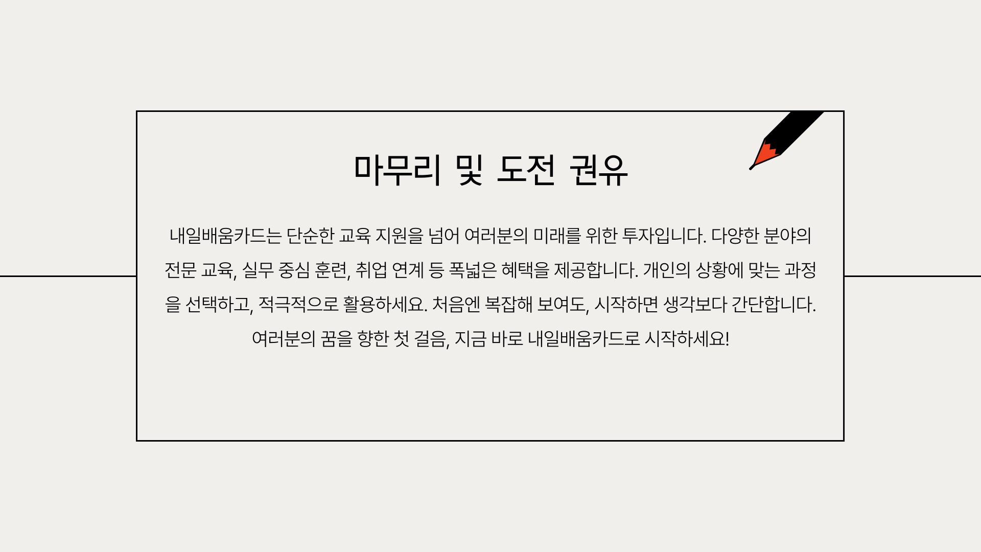 제가 직접 경험해보니, 처음엔 복잡해 보여도 막상 시작하면 굉장히 간단해요. 훈련을 통해 실력도 키우고, 더 나은 미래를 준비할 수 있었습니다 💪 여러분도 꼭 도전해보세요! 내일배움카드는 단순한 교육비 지원을 넘어