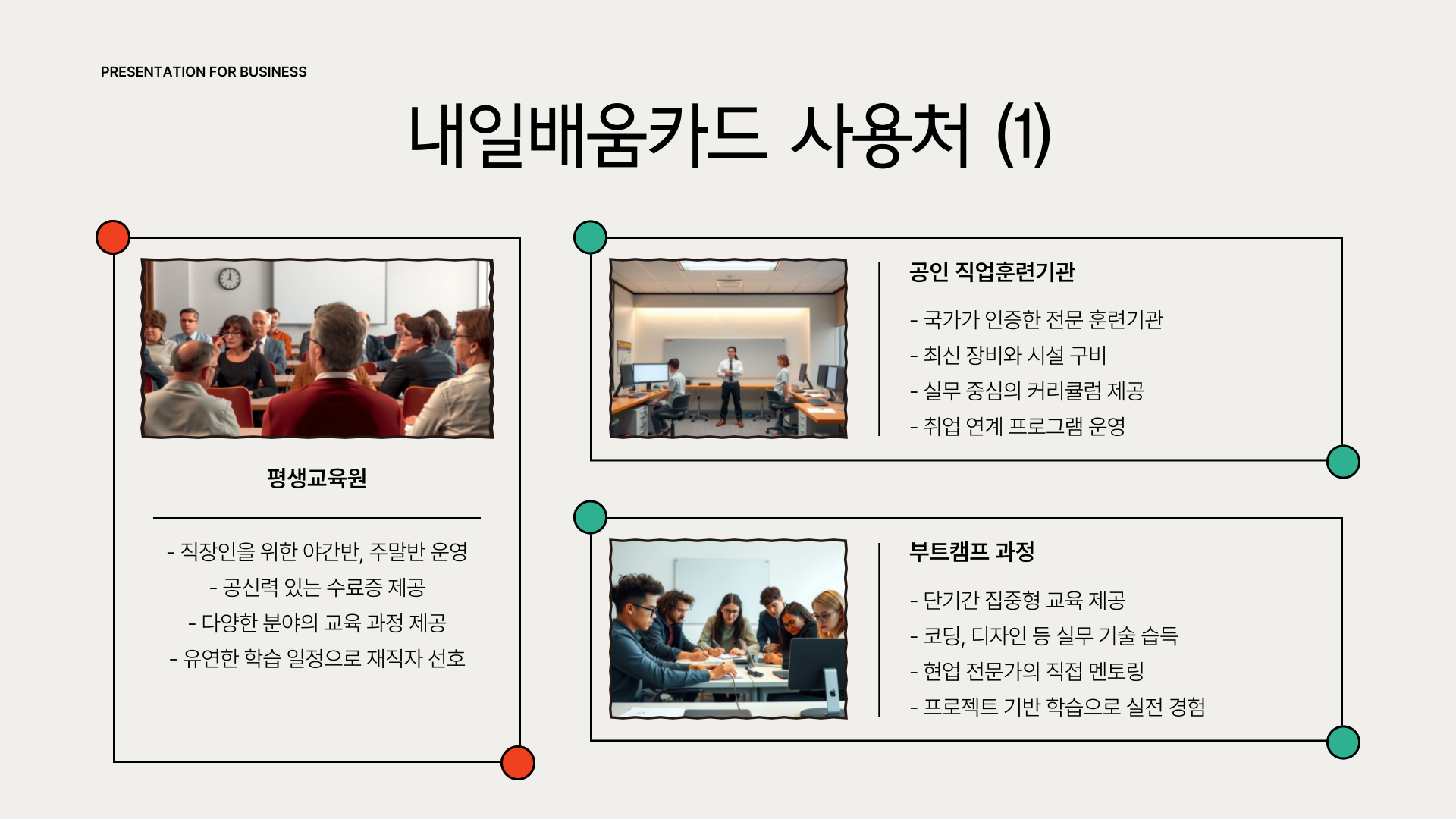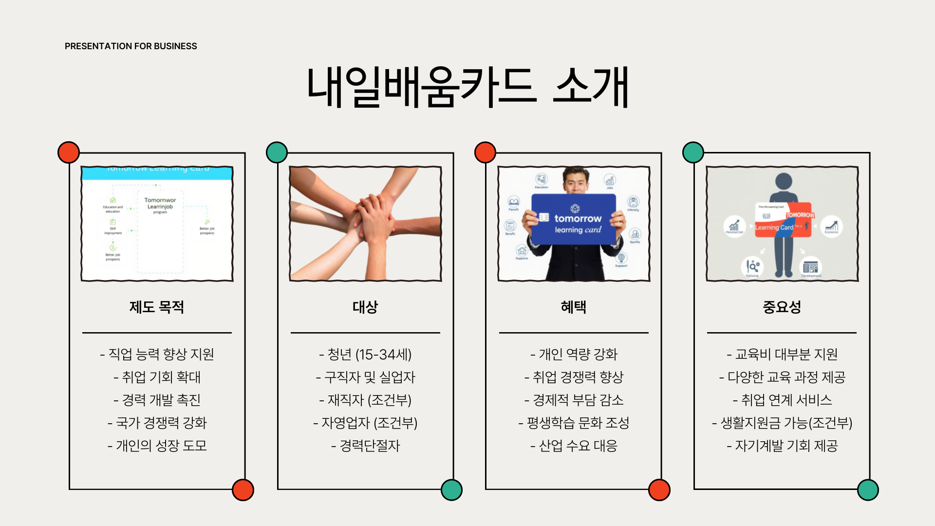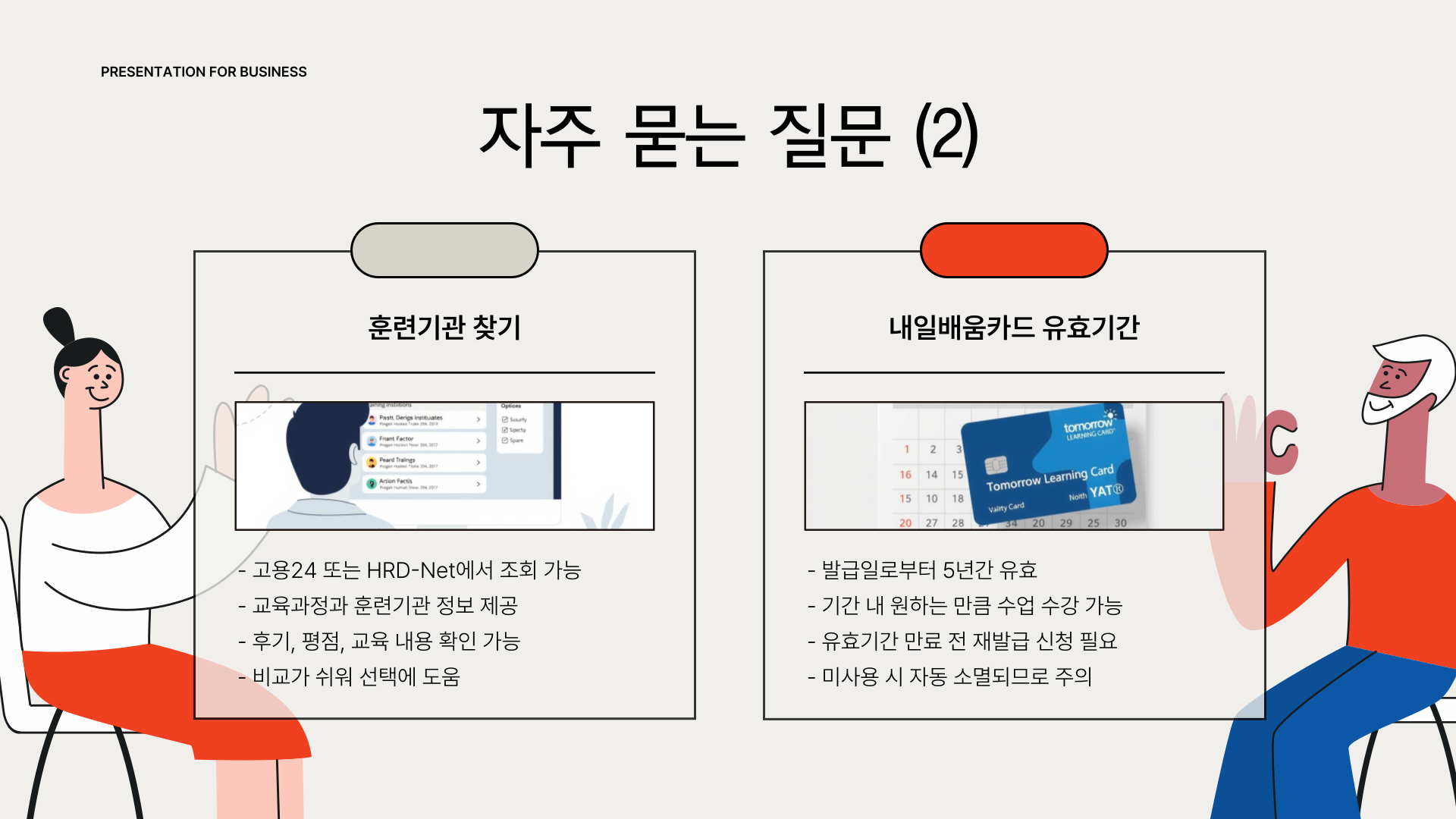 제 경험을 이야기해보자면, 저는 대학 졸업 후 계속 아르바이트만 하다가 내일배움카드를 알게 되었어요. 자세히 보니