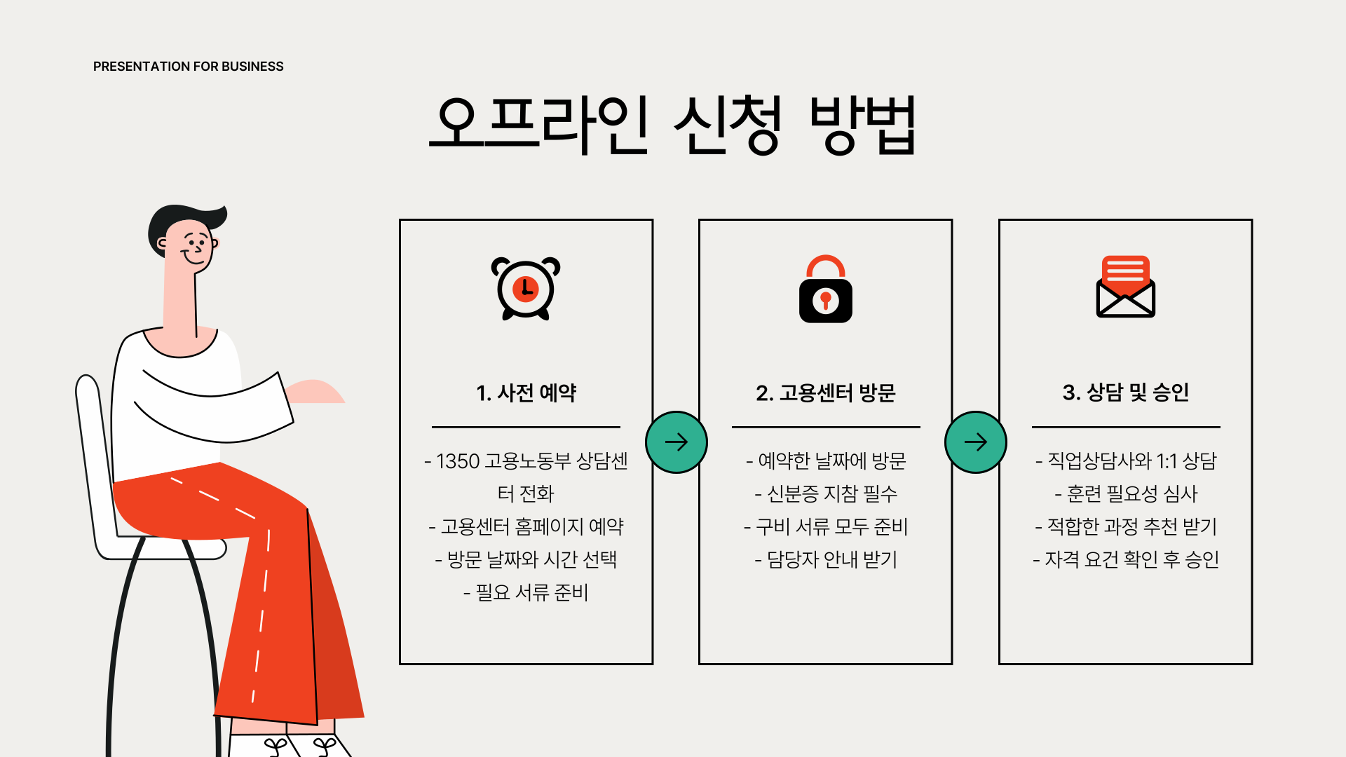오프라인 신청은 사람 대면이 부담스러울 수도 있지만, 담당자가 직접 상담해주기 때문에 더 많은 정보를 얻을 수 있어요 😊