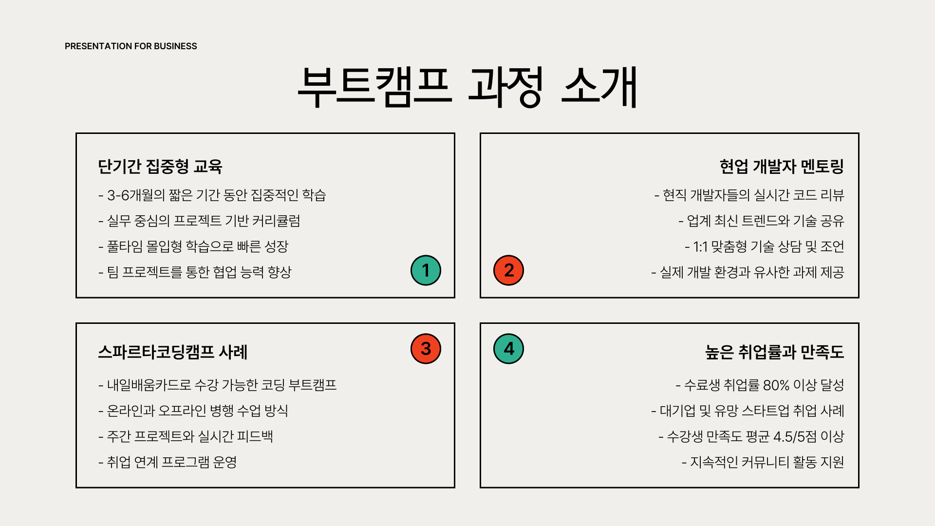 특히 부트캠프 과정이 엄청 인기예요. 단기간 집중형으로