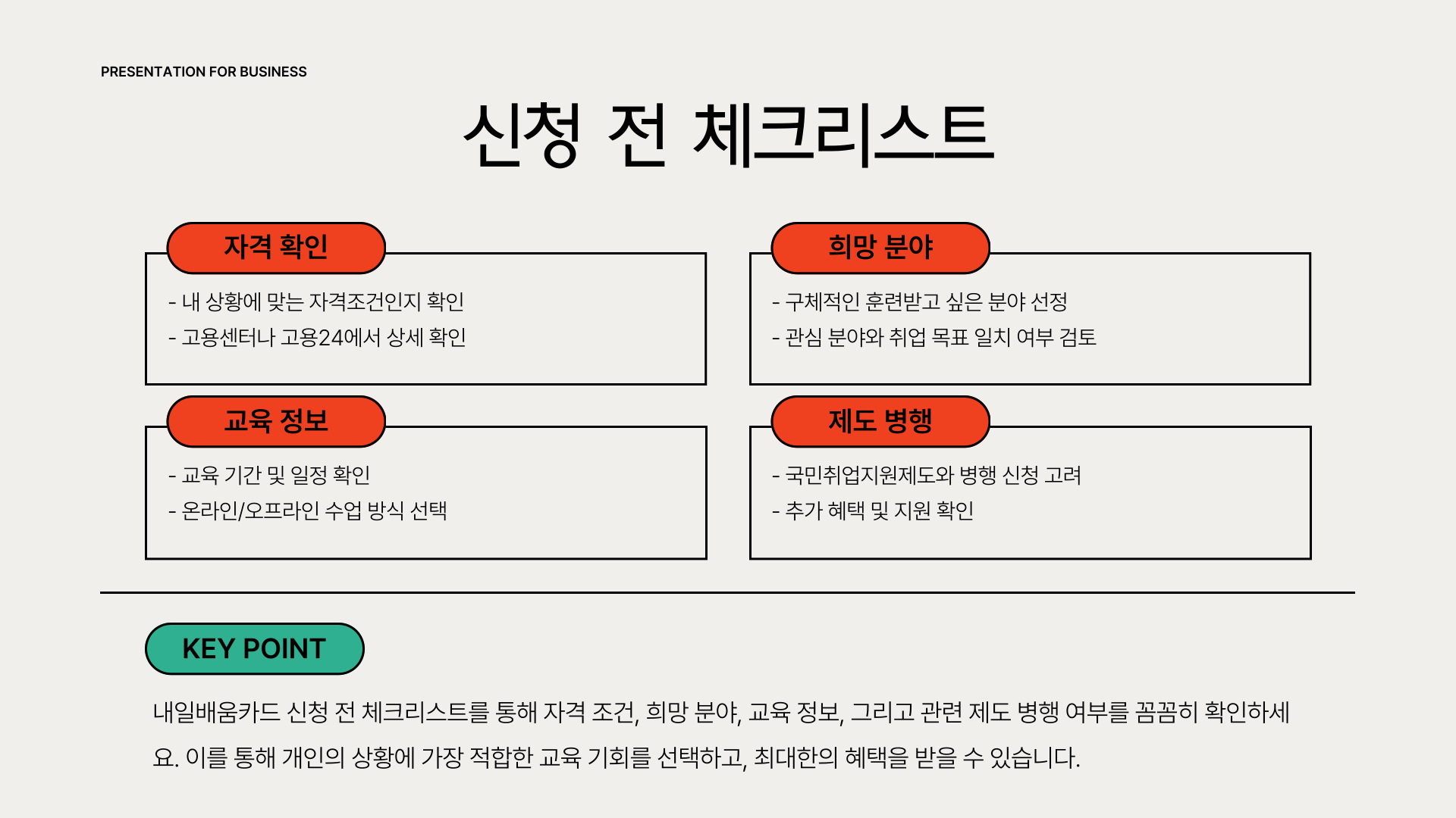 내일배움카드는 직업 능력을 키우고 취업에 도움을 받을 수 있는 최고의 제도 중 하나입니다. 하지만 아무나 받을 수 있는 건 아니에요. 신청 자격을 먼저 정확하게 확인해야 해요.