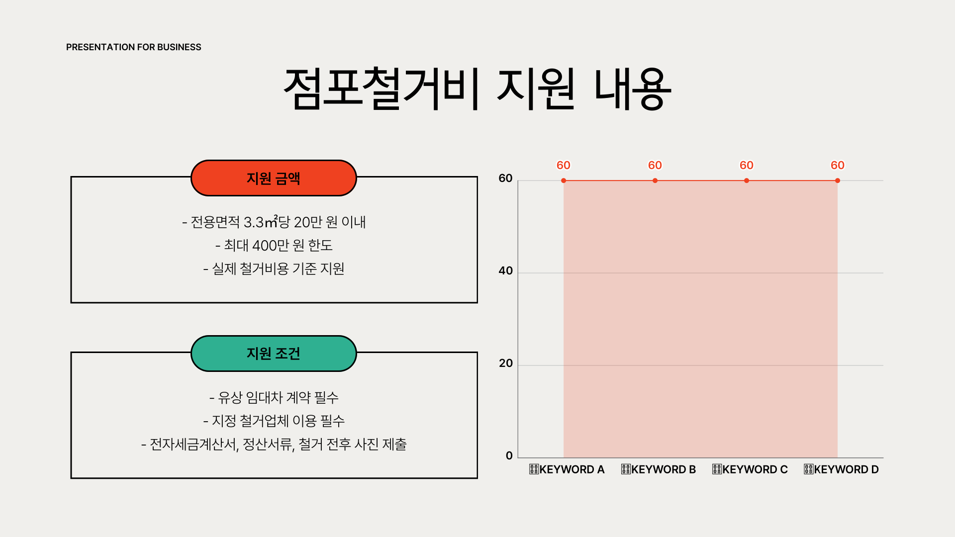 주의할 점은 ‘점포철거비’는 반드시 신청 → 승인 → 철거 순으로 진행해야 한다는 것입니다. 순서를 어기면 지원을 받을 수 없습니다.
