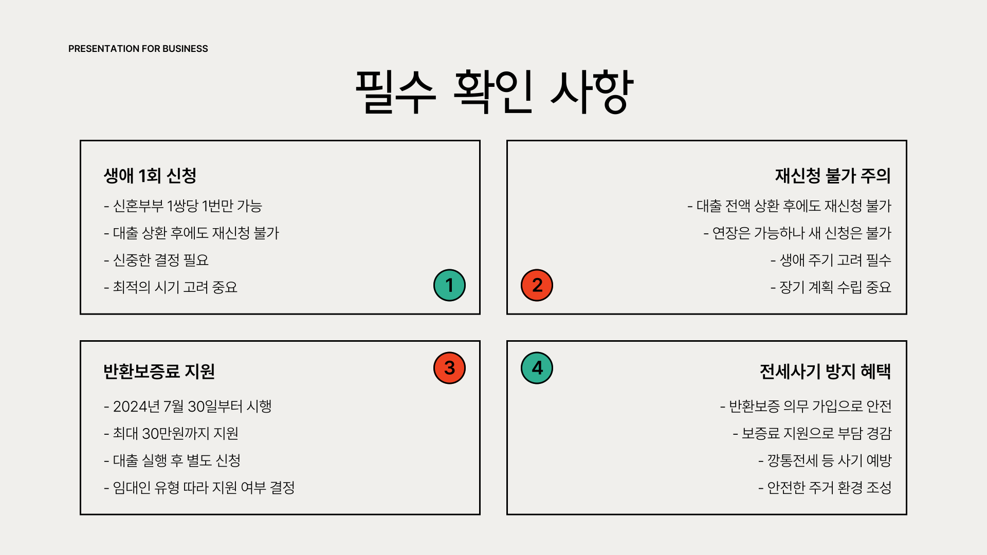 이 제도는 생애 1회만 신청 가능하다는 점을 꼭 기억하세요! 저희는 대출 전액을 상환한 후 다시 신청하려 했지만, 안 된다는 설명을 들었어요. 재신청이 불가하다는 점, 꼭 숙지해야 합니다.