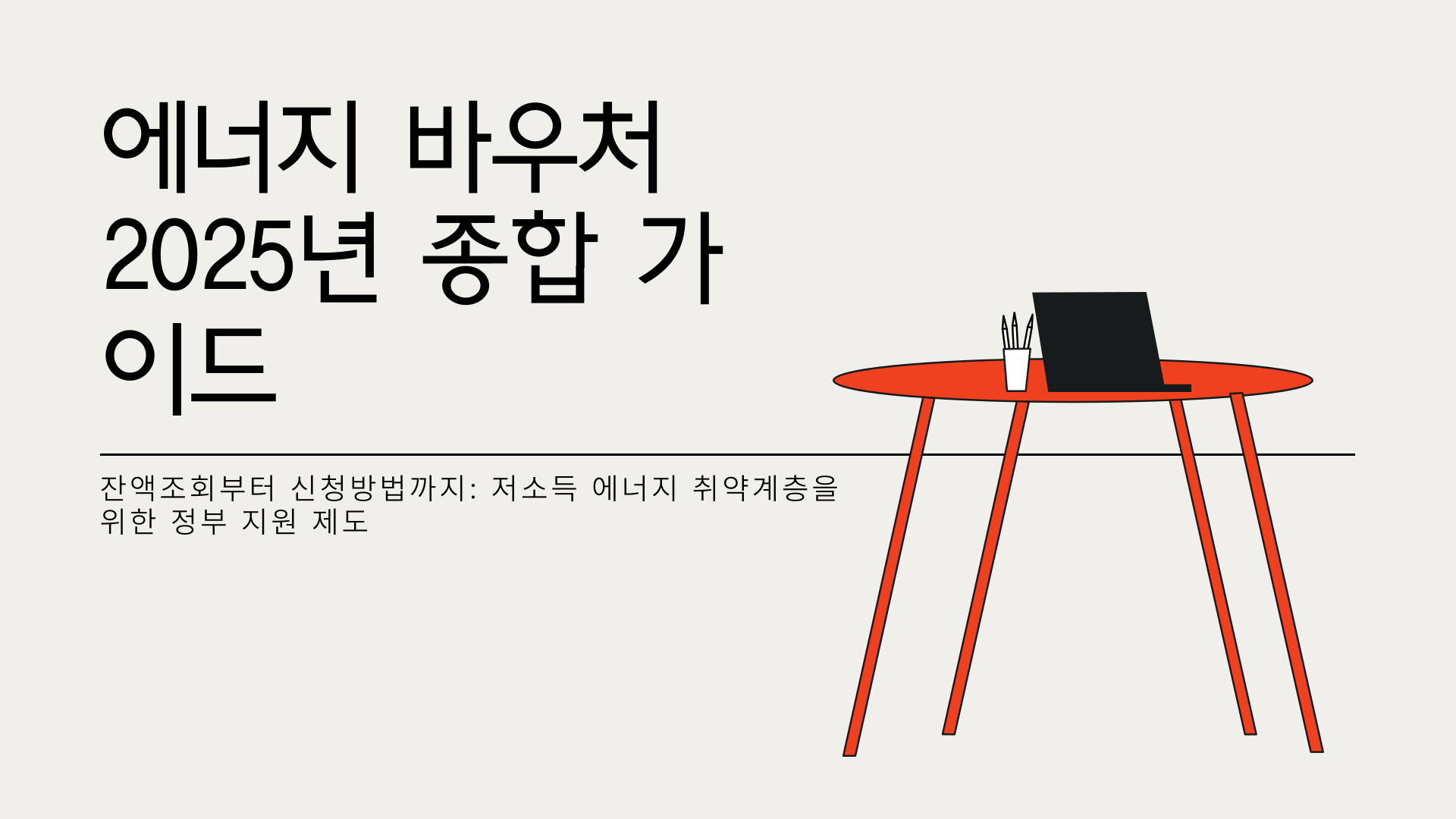 에너지 바우처는 정부에서 저소득 에너지 취약계층에게 지급하는 지원 제도입니다. 전기, 도시가스, 지역난방, 연탄, 등유, LPG 등 일상생활에 필수적인 에너지를 구매할 수 있도록 돕는 바우처 방식입니다.
