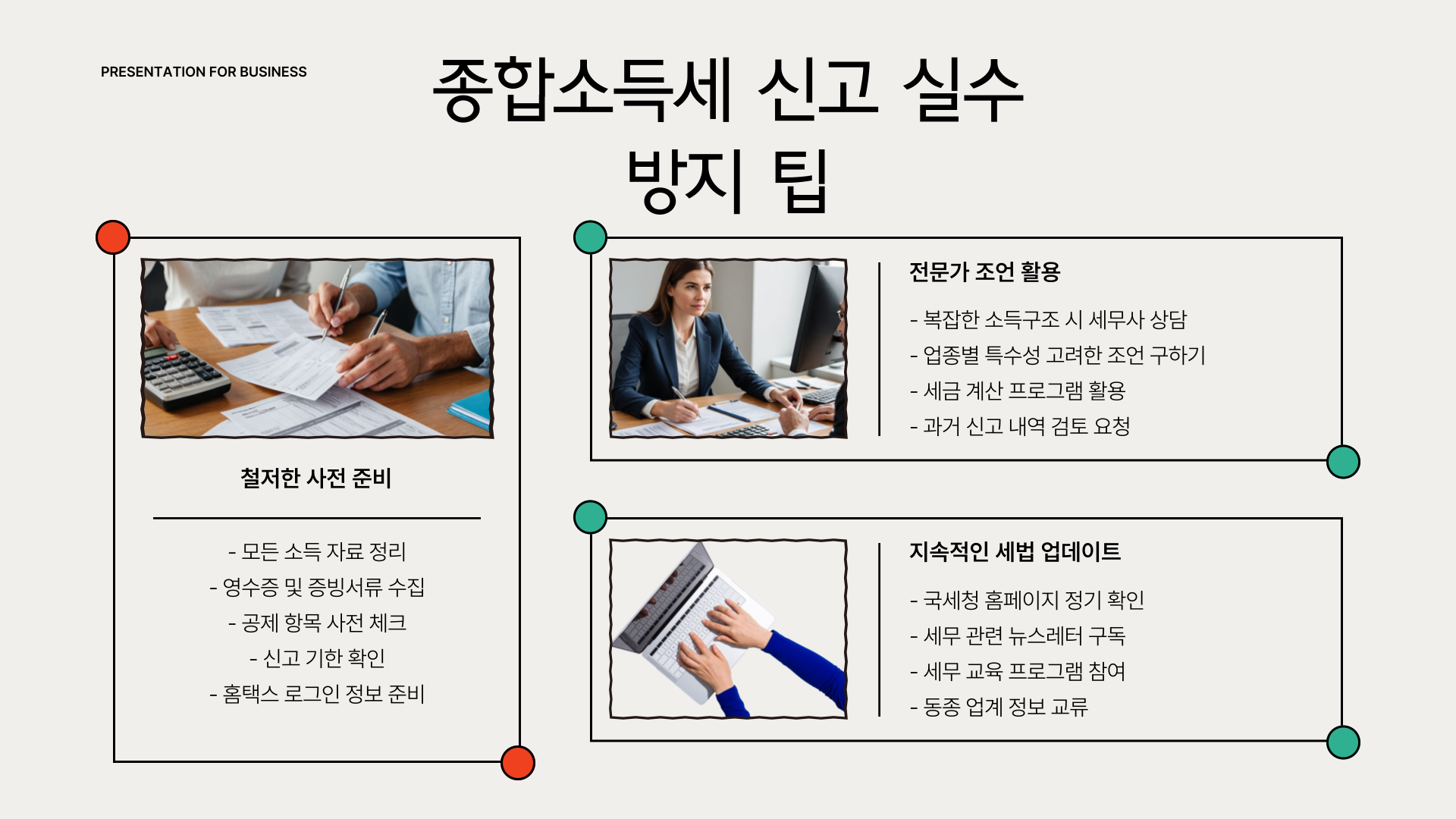 특히, 필요서류가 많거나 소득 유형이 다양한 경우에는 사전에 관련 증빙서류를 정리해 두는 것이 중요합니다. 보험료 납입증명서, 교육비 납입증명서, 의료비 명세서 등은 대부분 전산 연동이 되어 있지만 누락 여부는 수동으로 꼭 확인해야 합니다.