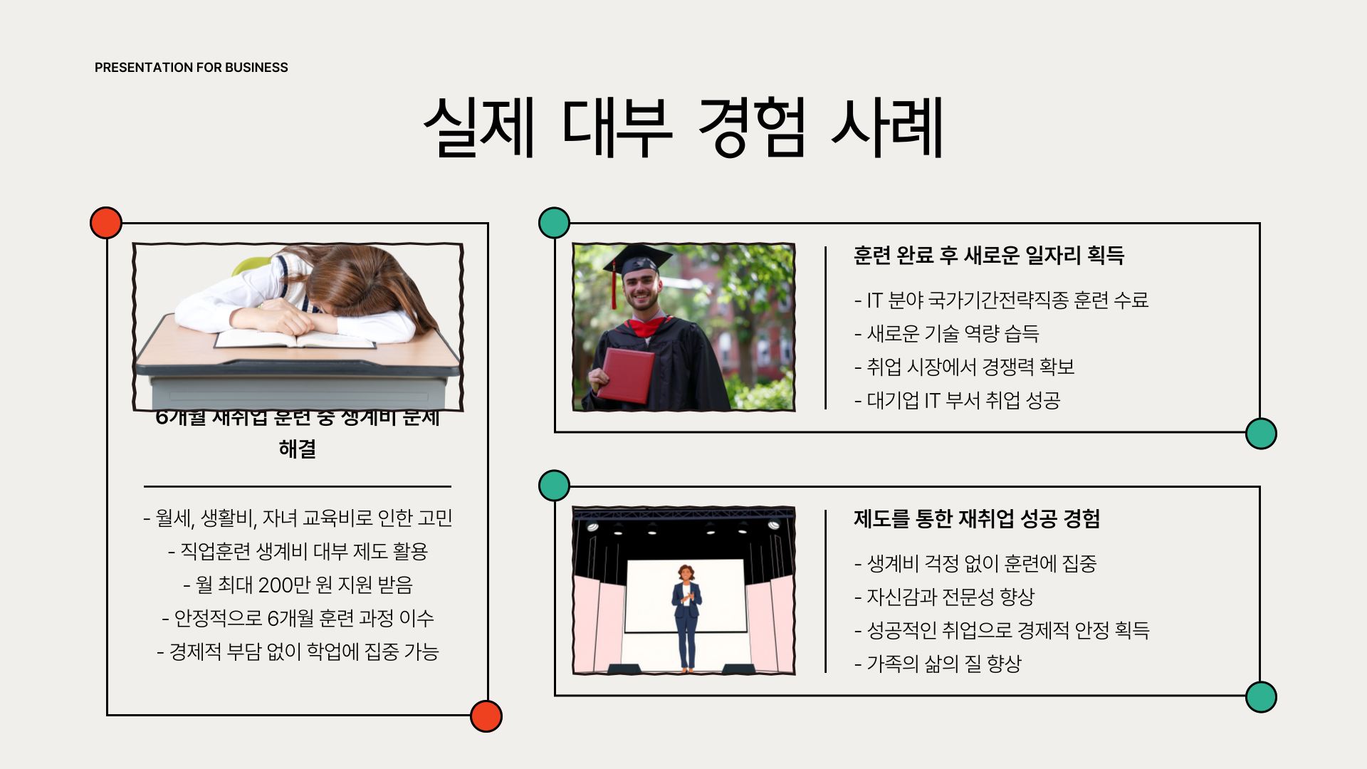 이 제도 덕분에 많은 분들이 생계 걱정 없이 훈련에 전념할 수 있었고, 저 역시 실제 대부 경험을 통해 재취업 성공이라는 결과를 얻을 수 있었습니다.