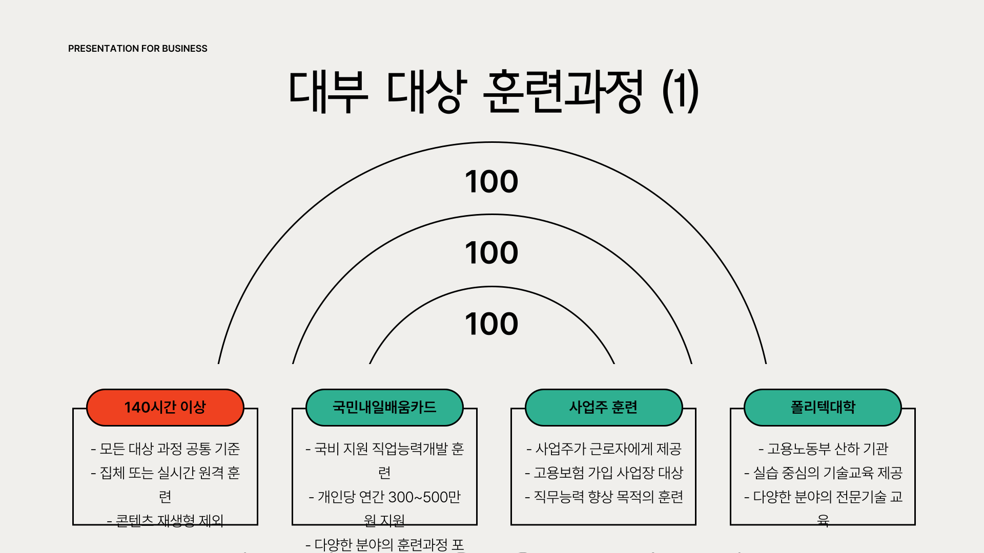 - 140시간 이상의 집체·비대면 실시간 원격 훈련(콘텐츠 재생형 제외)에 참여하는 훈련생